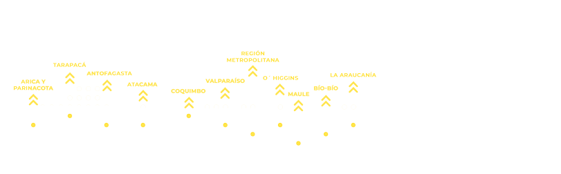 XV Región, I Región, II Región, III Región, IV Región, V Región, Región Metropolitana.
